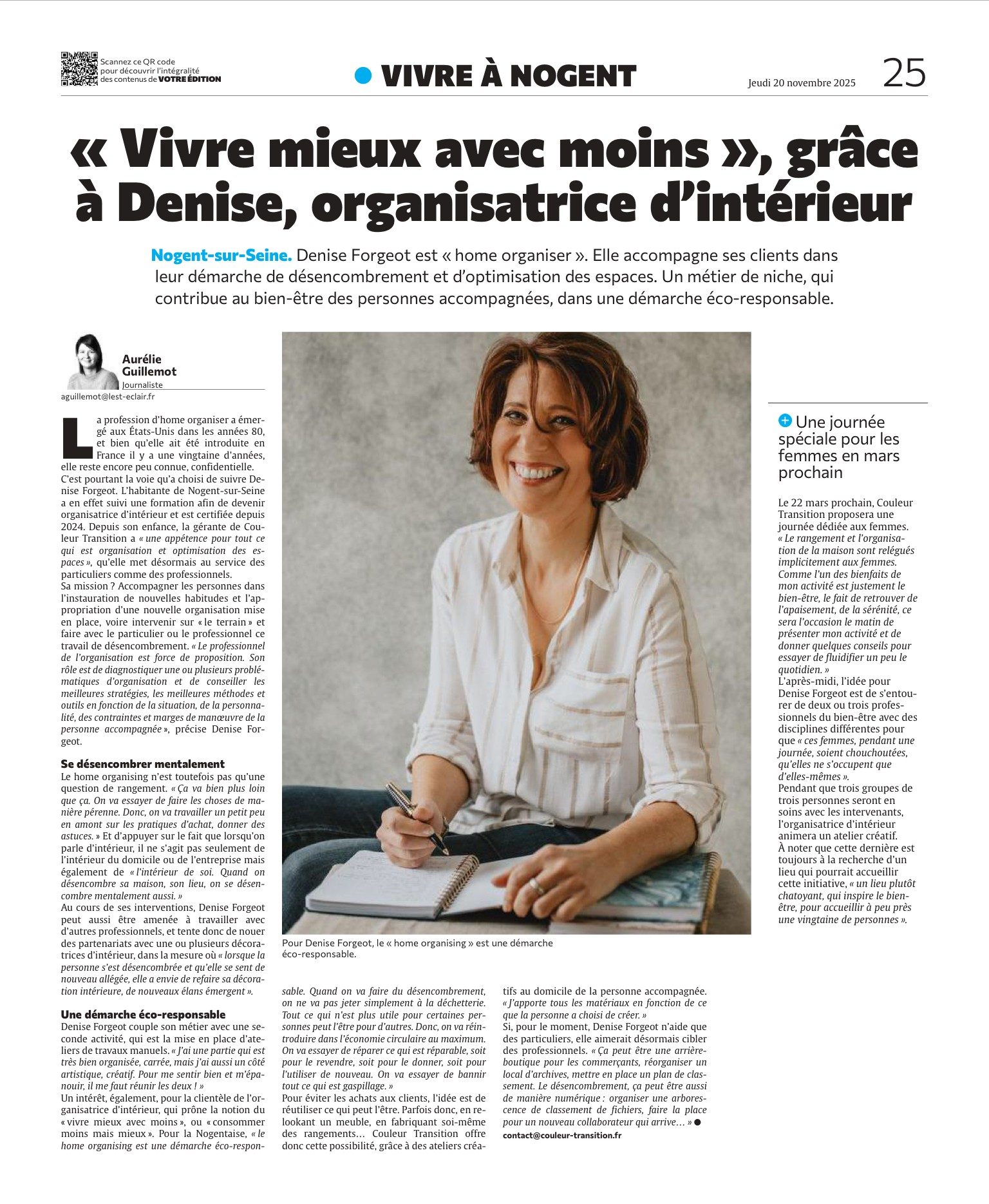 Le journal L’Est Eclair met en avant Couleur Transition en lui consacrant un article sur mon activité de home organising.